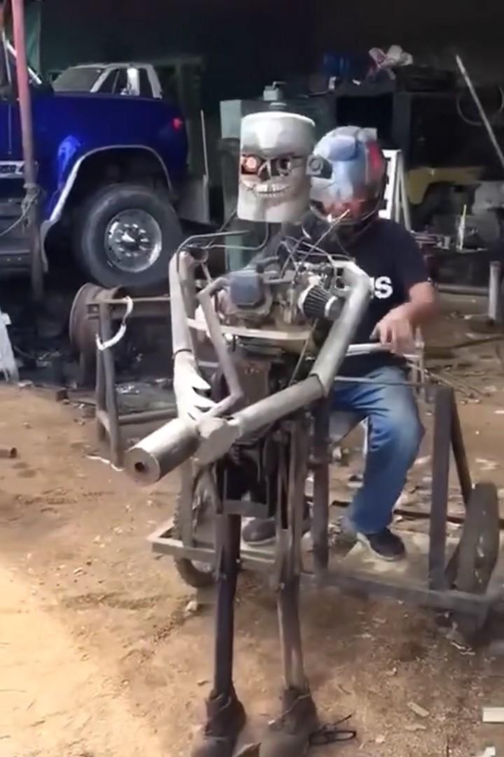 “Cuando me queda tiempo me imagino hacer algo. Me gusta mucho la mecánica de Arquímedes, me encanta la física mecánica y la llevo a cabo con las cosas que hago. Cosas así significativas, por ejemplo, una moto a vapor que hice, por ahí un robot que lo ven mucho en redes, con una carreta, un aerodeslizador… una vez construí guitarras eléctricas, bajos, cosas así”, puntualizó.