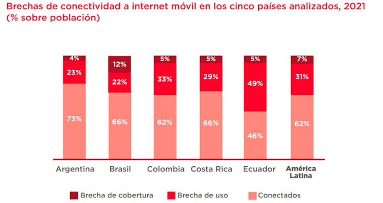 La universalización de los accesos móviles encuentra severas limitaciones por dos motivos: por un lado, por la cobertura de las redes, que en una región con la extensión y variedad geográfica de América Latina y el Caribe posterga a quienes viven en localidades alejadas de los centros urbanos.